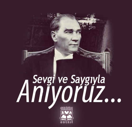 Gelişim Koleji öğrencileri, Ulu Önder Atatürk'e vefa borcunun, bu ülkeye yaraşır bir şekilde çalışmak ve emek vererek ödenebileceğinin bilincinde, özel bir anma törenine daha imza attı. Törende, sadece Mustafa Kemal Atatürk'ün değil, ülkemizin kuruluşuna destek vermiş tüm büyüklerimizin emeklerini vurgulayarak bu emeğe duydukları saygı ve hayranlığı dile getiren öğrencilerimiz, büyük fedakarlıklarla inşa edilen bu ülkeye hizmet etmenin onurunu taşıdıklarını ifade eden sunumlar gerçekleştirmişlerdir.