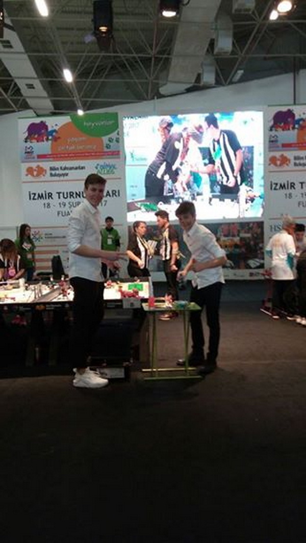 Bu yıl 13.FILL Türkiye Turnuvaları teması olan "Hayvanlar:Yaşam Ortaklarımız" ile ilgili lise takımımız G-Force Araba kaputuna giren kedilerin tespit edilip zarar görmeden çıkartılmasını sağlayan projesi "En iyi araştırma Ödülü" alırken; Ortaokul takımımız Noisybot'un köpek bakım simülasyonu projesi büyük beğeni topladı..Ortaokul takımımız masa üstünde verilen gorevleri en özgün yolla yaptığı için de "Robotta Strateji ve Yenilikçilik Ödülü"nü de kazandı...Öğrencilerimizi kutluyor, başarılarının devamını diliyoruz...